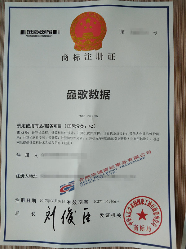 最新下达的商标注册证
