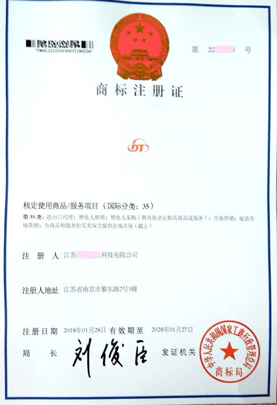 您委托我所代理商标注册申请,名称为“DT” 35类商标注册证已下达。