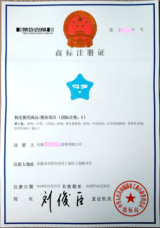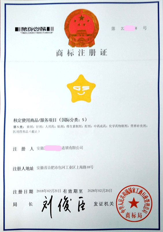 您委托我所代理商标注册申请,名称为“图形”5类商标注册证已下达。
