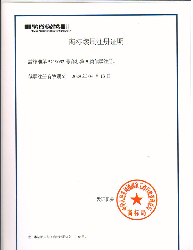 您委托我所代理商标注册申请,第“5219092”9类商标续展注册证明已下达。